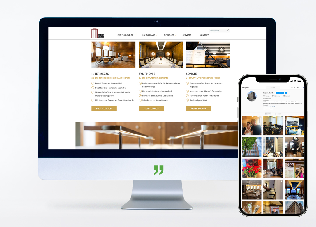 Das Brahms Kontor hat sich auch als Top-Eventlocation in Hamburg etabliert. 4 denkmalgeschützte Räume im Stil der 1920er Jahre und eine moderne Meetingfläche können für Business-Meetings, Schulungen, Konferenzen oder vertrauliche Gespräche angemietet werden. Die Idee zum Ausbau der außergewöhnlichen Räume ist kggk aktiv. Involviert waren wir in Konzeption, Architektenwettbewerb, Ausbau, Vorstellung bei den Mietern. Aktiv sind wir in allen Fragen der Vermarktung und der Erstellung aller erforderlichen Kommunikationsmaßnahmen wie Anzeigen, Broschüren, Videoproduktion, Präsentation in Location-Portalen. Live, Print, Online – Full Service.