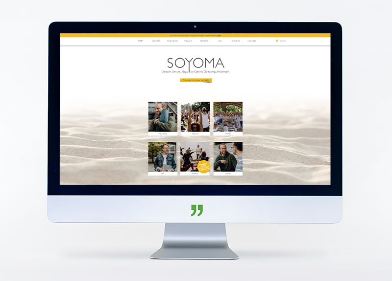 Dennis Wittmann ist ein Yogalehrer, der ein sehr ganzheitliches Yoga anbietet. Wir vertrauen ihm als Yogalehrer. Er vertraut uns als Marketing- und Kommunikationsteam an seiner Seite. Strategisch haben wir gemeinsam eine Positionierung erarbeitet. Zusammengefasst drücken wir die Besonderheit von Soyoma mit "Deeper.Senses.Yoga" aus. Die Präsenz auf der Yogamatte kommt auch durch die Präsenz im neuen Markenlogo zum Ausdruck.